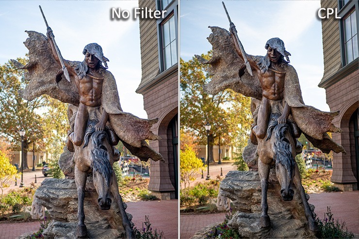 The filter can increase both contrast and saturation in a backlit scene, and add slightly warmer colors. These are all desirable traits when photographing subjects against a bright sky. The polarizer slightly reduces the amount of light coming into the lens, but not nearly as much as a neutral density filter does.