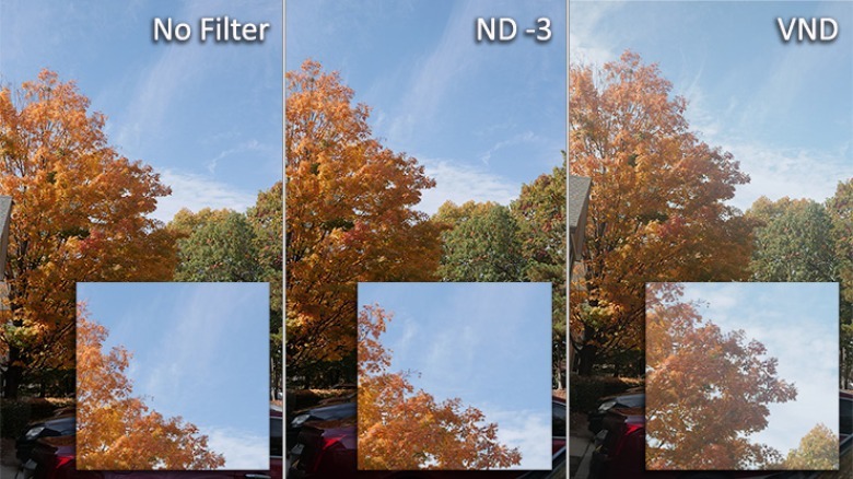 Fixed NDs like these typically give superior color and sharpness performance. However, photographers and videographers opt for cheaper variable NDs. The variable ND has two glass elements, which rotate to adjust the strength of the filter. The low cost and convenience of a variable filter may outweigh the quality boost of the fixed type.