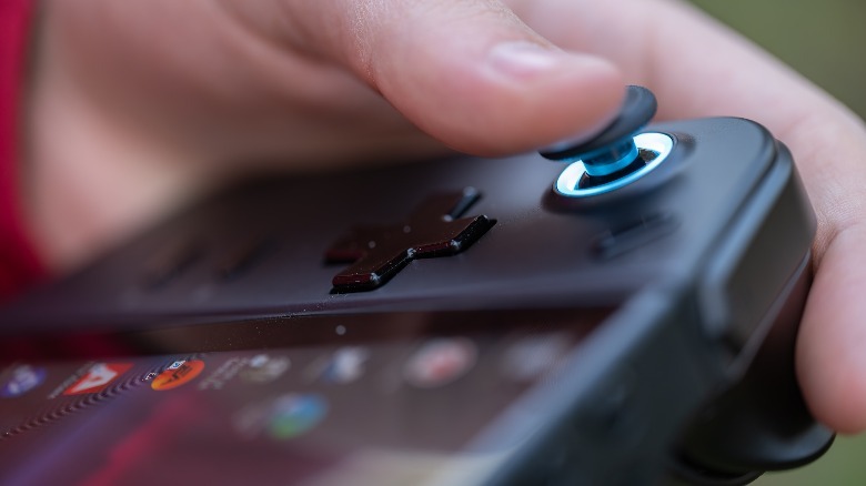 The somewhat odd aspects of the controller layout make more sense when you flip the switch on the right-hand controller to "FPS" and attach it to the included magnetic base plate. This turns it into a sort of mouse that you grip like a flight stick. It certainly makes some games more playable than if you only had thumbsticks, but it takes a long time to acclimate. We also found that with most games we needed to customize the button layout when using the Legion Go in FPS configuration.