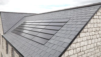These shingle-sized solar tiles don't look much different from regular roof shingles from a distance. Unlike full-sized panels they aren't set up in only one section of the roof, either. Instead, they cover the entire surface — just like and in place of regular roof shingles — to the point where they aren't immediately noticeable most of the time.