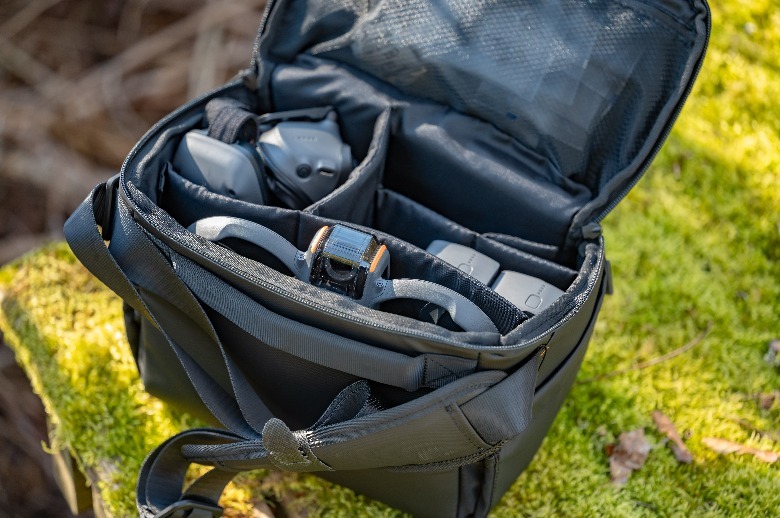 As with all DJI drones, there's a Fly More combo you can pick up, which I recommend for anyone buying into this new system. There's both a one and three-battery version of this combo. You will almost certainly want the extra batteries, and the three-battery "fly more" combo also includes the two-way charging hub and a sling bag. I love the new sling bag, which fits the drone and all your accessories nicely and is quite high quality in build and materials.