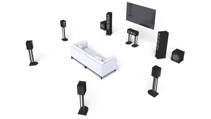 The term "home theater" is pretty self-explanatory: A home entertainment system assembled to get the closest thing to a movie theater-style experience that you can fit into your home. Generally speaking, it's used to refer to a combination of a large TV (or projection screen) and a surround sound system. Though surround sound is also used for TV shows, video games, and even multichannel music, it's most closely associated with the theatrical movies where it originated.