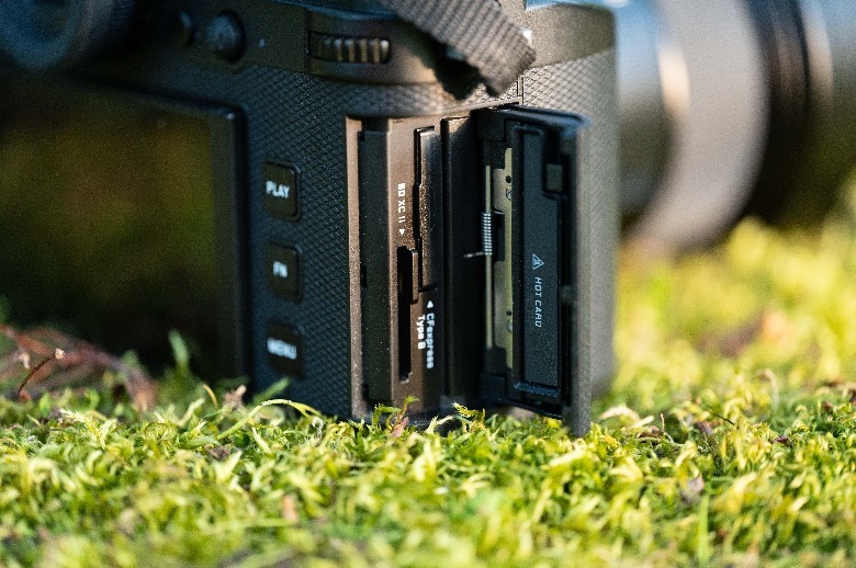 The SL3 features HDMI 2.1 Type A, USB 3.1 Gen 1 Type C, 3.5mm headphone and microphone jacks, and hotshoe. Port covers are made of a soft rubbery material, and are the only aspect of the camera the durability of which might be a potential concern down the road. It features both an SD card slot and a CFExpress Type-B slot, so you have multiple options for storage.