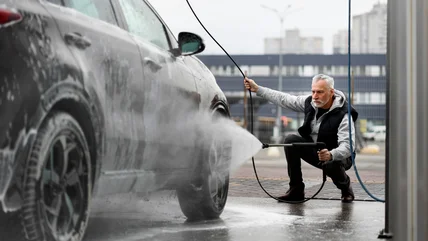 A good tip is to rinse each section with a hose or pressure washer before moving on to the next. This prevents soap from drying on the car, which can leave streaks and spots. Make sure to rinse from the top down to help carry away any remaining dirt and soap — setting the stage for a thorough rinse and drying process next.