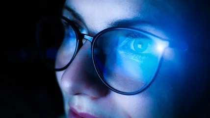 Staring at a screen for an extended period of time causes you to blink less, which then might cause eye strain but it isn't a guaranteed side effect. Instead, AAO says the culprit is how people use screens, not something that the screen produces. Furthermore, the American Journal of Ophthalmology conducted a study with 120 symptomatic computer users, concluding that blue-blocking lenses had no effect on their eye strain. Similarly, the Cochrane Library found that there is "little or no effect of blue-light filtering lenses" compared to normal glasses, stating that their tests also did not reduce the symptoms of computer eye strain in their subjects.