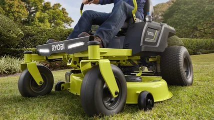 One such product is a Ryobi lawn mower, specifically one of the company's zero turn mowers. When it comes to the rideable electric grass-cutting machines, Ryobi has two options. The 80V HP Brushless Zero Turn Riding Mower features the company's patented iDrive Intelligent One-Handed Drive System, a Hyper Charger, and an LCD screen for system information. It comes in three sizes, 30-, 42-, and 54-inch frames, all powered by their high performance batteries that can deliver the equivalent of 28, 31, and 42 horsepower, respectively. The prices range from $4,999 to $6,999, barring any deal that marks them down.