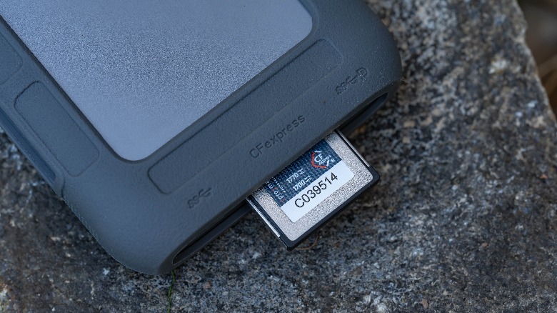 In terms of ports, each end of the UnifyDrive UT2 is crammed with them. There's CFexpress Type B and UHS-II SD card readers which also support TF and CFexpress Type A with adapters, so you can plug storage media from cameras or drones directly into the UnifyDrive UT2. Backup is as simple as a single button press, and doesn't require the drive to be connected to your phone or computer.