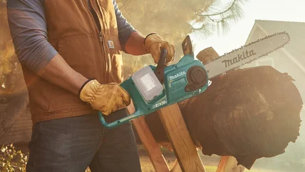 Between dealing with the seasonal storms and collecting firewood, a chainsaw can become one of the most helpful power tools to own during the fall. One of Makita's more powerful battery-operated chainsaws with a long bar length is the 36V LXT 16 Inch Brushless Chainsaw for $354 at Home Depot. Due to the 16 inch bar length and chain size, this chainsaw can offer up to a 14 inch cut diameter. It also provides a chain speed of 44.77 mps. The handle type is a rear handle as opposed to the top handle style that some professionals like to use.