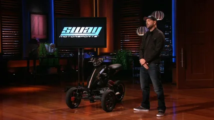 The pitch for Sway Motorsports was a bit simpler than many of those that often appear on the show. Wilcox demonstrated the scooter by riding it into the "Shark Tank," leaning his body to make sharp turns around the room. The unique mechanism of its controls was laid bare: a balanced axle system on the front two wheels pivoted the direction in response to the rider's lean, or "sway."