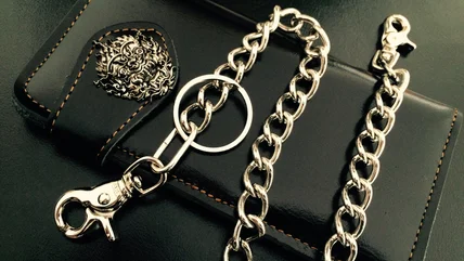 In later decades, biker chains were adopted by punk, metal, and grunge music subcultures, and even as those generations aged, the chains remained clipped to their members' jeans. Chains aren't just for wallets; you can attach them to keys, lighters, or some cell phone cases. You don't have to go to Sturgis to get one, either. The Newtro heavy-duty biker chain shown above is available in black and silver in 17 and 24-inch lengths from Amazon; the 17-inch chain retails for $21.99, and the 24-inch version costs a dollar more.
