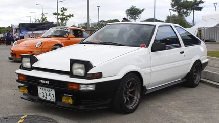 The design of the AE86 is instantly recognizable. The super boxy lines, the characteristic shape of the liftback models, the pop-up headlights on the Trueno, but also the fixed ones on the Levin models. It was functional, but it was also a joy to look at. Even without its iconic black and white paint scheme and Fujiwara Tofu Shop written out across the driver's side door, the Trueno AE86 is an iconic vehicle in Toyota's history, and it definitely looks the part.