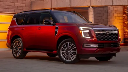 Due to its larger size, the 2025 Nissan Armada has been given an extra 1.7 cubes of maximum cargo space, compared with the last generation model, which now raises the cargo volume behind the first row to 97.1 cubic feet. There's now also 56.3 cubes behind the second row, and 20.4 cubic feet behind the third row, up from 16.5 cubes in the previous model. Nissan also made changes under the hood, with the 5.6-liter V8 engine now replaced by a new 3.5-liter twin-turbocharged V6 that puts out 425 hp and 516 pound-feet of torque. That's some 25 hp and 103 lb-ft over the 2024 Armada, although the tow rating is kept in check at 8,500 pounds.