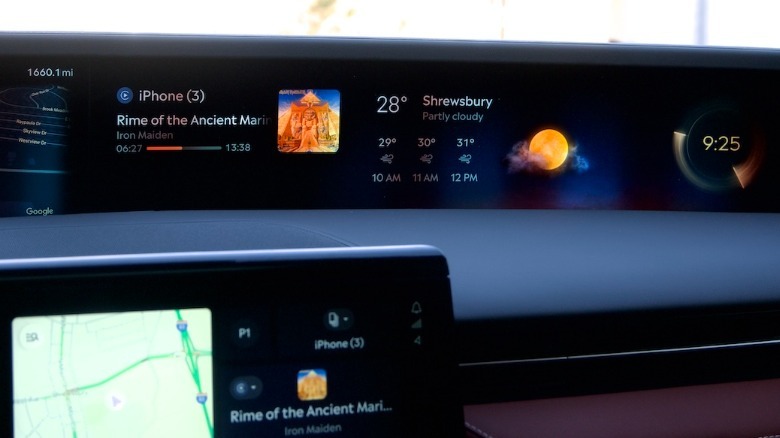 The huge screen across the entirety of the dashboard, right under the windshield, is almost the focus of the entire driving position. It's a full four-feet wide and gives you everything from weather, your music choice, to turn-by-turn navigation. Honestly, I was ready to hate the screen, but I actually found it pretty useful. Knowing the weather forecast and having a live map in front of you at all times is rather handy. Over the course of the week, it became less ostentatious, and kind of melted into the periphery of my vision.