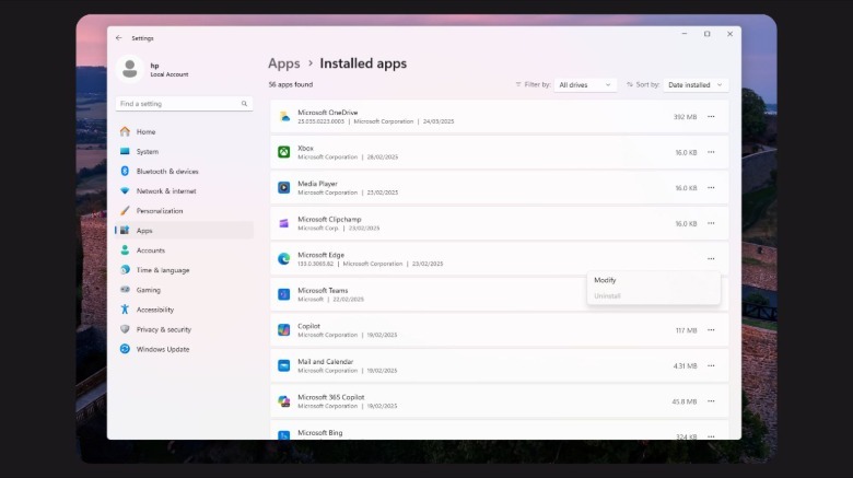 You can test the above yourself by going to "Settings" > "Apps" > "Installed Apps" and locating Microsoft Edge in the list. When you click the three dots next to it, you'll see the "Uninstall" button grayed out.