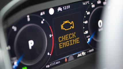 Generally, a lit check engine light is a red flag that leads to failure. If your vehicle is 1996 or newer, it's equipped with an Onboard Diagnostic system (OBD-II), which inspectors use to verify emissions compliance. During the inspection, they plug a scanner into the OBD-II port — usually located under the dashboard — to read data from your car's computer. When the check engine light is on with the engine running, that's an automatic fail for the emissions test — no questions asked.