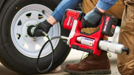 When purchased online, the Bauer 20-volt Cordless Variable-Speed Grease Gun is priced at $129.99. It also delivers up to 10,000 psi and its variable-speed trigger allows up to 5 ounces per minute of flow. It has the same 14.5-ounce stainless-steel barrel with an accessory port for adding a bulk filler nipple.