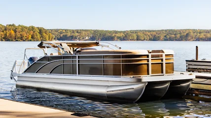 The tubes of a pontoon boat are completely hollow, suspending a bubble of air-filled space like a heavy balloon. Much like an inflatable chair in your pool, this suspended air allows the logs to float on water, while their sturdy metal construction allows them to hold up a substantial amount of weight without dipping or buckling. A traditional pontoon boat has two of these tubes mounted beneath the deck, with their combined buoyancy keeping everything safely afloat. Some pontoons can have as many as three tubes mounted at once; this kind of pontoon boat is often known as a "tritoon."