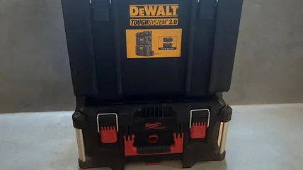 If you visit the handcrafts website Etsy, you can find a specialized adapter specifically for connecting DeWalt ToughSystem and Milwaukee Packout containers into a stack. The adapters in question are sold in pairs and are 3D printed from impact-resistant PETG material. The tops of these adapter rails are designed to slot into the bottom of a DeWalt ToughSystem container, while the bottoms can slot into the top of a Milwaukee Packout container.