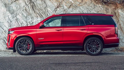 To get there, Cadillac blends parts from the LT4 V8 in the current CT5-V Blackwing with the LT5 V8 from the C7-generation Corvette ZR1. Known internally as the LT4.5, the configuration features a 2.65-liter supercharger, cast stainless-steel exhaust manifolds, and the ability to run the exhaust outlets in stealth mode for early neighborhood departures or V-Mode for maximum effect. As far as cars, or SUVs, with Corvette engines go, the Escalade-V blows the base Corvette mill out of the water in output, as the current Stingray makes a mere 490 hp and 465 lb-ft of torque, though it is naturally aspirated.
