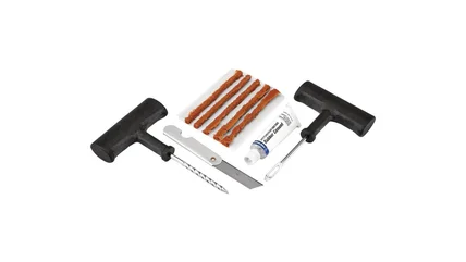 The Pittsburgh Tubeless Tire Repair Kit is one of several Harbor Freight tire repair products sold at the budget tool store. The nine-piece kit includes four tire plugs, a tube of rubber cement, a hook tool, a reamer, and a folding razor knife. The Pittsburgh kit is designed to help you repair small punctures in tubeless tires, like those found on most passenger vehicles. It's a great tool to keep in your car's emergency kit or in your home tool box, and it can help make the difference between being stranded on the side of the road and getting to your destination in a timely manner. However, it's worth noting that the kit will not work for large gashes and other severe tire damage. Rather, it's meant for small holes and punctures, like those caused by nails and screws.