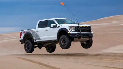 Finally, we come to the final truck in our lineup today: the Ford Raptor R. Much like the Ram 1500 TRX, this truck is built for speed and play rather than work and towing. It's also adept at off-roading, which is why you'll see so many product images of this thing jumping around dunes. In any case, among the frolicking fun that the Ford-150 Raptor R promises, one of the things Ford doesn't tell you is that the engine in this thing is really loud. Even inside the cabin, where the exhaust is quietest, the sound levels were measured at a hair over 80 decibels, which is louder than any modern pickup truck.