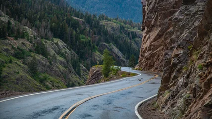 In a state known for some of the curviest roads is a stretch of asphalt referred to by locals as the Million Dollar Highway. Officially a stretch of U.S. Route 550, it carves a path 20 miles long through the San Juan Mountains and is bookended by the towns of Ouray at its north and Silverton at its south. It has been designated one of the most dangerous roads in America, owing to its sharp switchbacks and hundred-foot drops. Although it sits in the path of 70 avalanche tracks, large sections of the highway are needle-narrow and do not have guardrails, and winter conditions add further hazards for months each year. Despite a 25 mph speed limit, there were 53 crashes on the pass in 2024 alone. The Colorado Department of Transportation disputes the highway's characterization as dangerous and emphasizes that the views are among the best in the region.