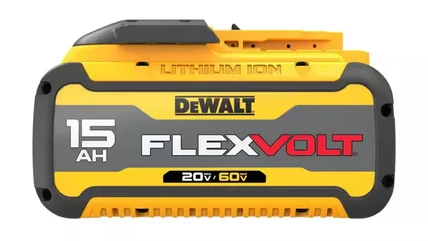 The DeWalt hardware brand sells a variety of different rechargeable battery packs in different sizes and voltages for your many handiwork needs. Two of its most prominent battery systems are the 20V and 60V families, used primarily for simpler handheld power tools and more heavy-duty, professional-grade implements, respectively. Both of these systems join together in the middle to create one of DeWalt's most robust battery systems, the Flexvolt line, at the top of which is the 20V/60V Flexvolt 15Ah battery pack.