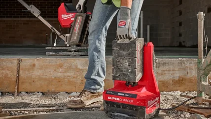 Milwaukee's Forge batteries are different from its standard RedLithium batteries. A difference that Milwaukee says equates to up to two-times more runtime compared to the MX Fuel RedLithium XC406. MX Fuel tools often come with an MX Fuel RedLithium XC406 Battery Pack. Run time for the MX Fuel Rocket Dual Power Compact Tower Light with that battery is listed at three hours on high or up to 10 hours on its lowest setting. One difficulty of gauging run time for the MX Fuel batteries is Milwaukee's random use of measuring units. The MX Fuel Breaker, a concrete demolition tool, can break a 40-foot-long by 1-foot-wide trench through 6-inch-thick concrete, or over two tons, on a single XC406 charge. Theoretically, those values should double when using the larger, XD12.0 Forge battery.