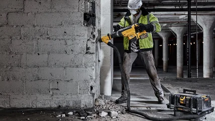 When the link is set up, squeezing the trigger on the transmitting tool will automatically activate the receiving tool at the same time. For example, if you've linked one of DeWalt's miter saws to a dust extractor, the dust extractor will automatically power up while you're running the miter saw, catching any sawdust you produce while working. Just remember that this system uses direct radio waves rather than Bluetooth or Wi-Fi, so the tools must have line of sight and be no more than 30 feet apart.
