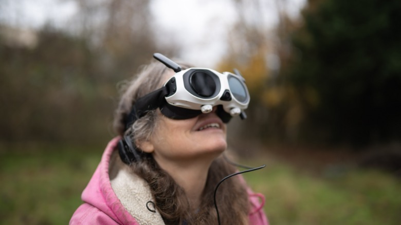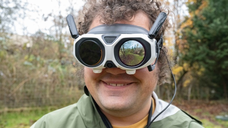 The headset offers a clear picture and a wide field of view, with numerous methods of menu control on the headset or through the motion control (which is itself an awesome and fascinating device). It also features a circular screen, which can display the view you're seeing inside the goggles to those around you. This is great for sharing the experience of flying with others. My one minor quibble is that the battery is designed to be worn via a lanyard around your neck, which can be somewhat awkward. However, this reduces the amount of weight on your head, making the goggles more comfortable to wear, so it is arguably a worthy tradeoff.