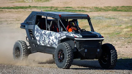 The gear lever is right from a Tacoma, the brakes are from Toyota GR sports cars, and so on. I didn't get to sit behind the wheel unfortunately, but I did see it rip around a dirt track ever so briefly. The Scion 01 Concept is similar to the aforementioned Polaris RZR in shape and overall purpose — that is jumping and racing around dunes as fast as possible — but the execution couldn't be more different. The Scion's hybrid powertrain gives it an EV mode that allows riders to use electric power. The extra torque imparted by electric motors is also a plus.