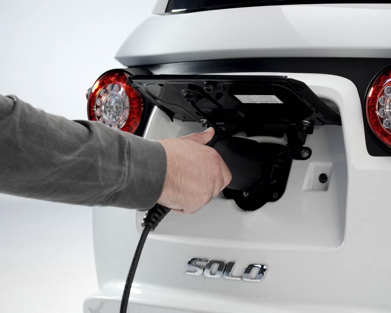 It has a smallish trunk in the rear and more luggage space under the front hood. No, you can't carry a golf bag, but driving the Solo EV is more fun than playing golf anyway. And don't think for a moment the cabin is as barren as a farm shed. The Solo EV has standard air-conditioning, Bluetooth connectivity, and a backup camera.