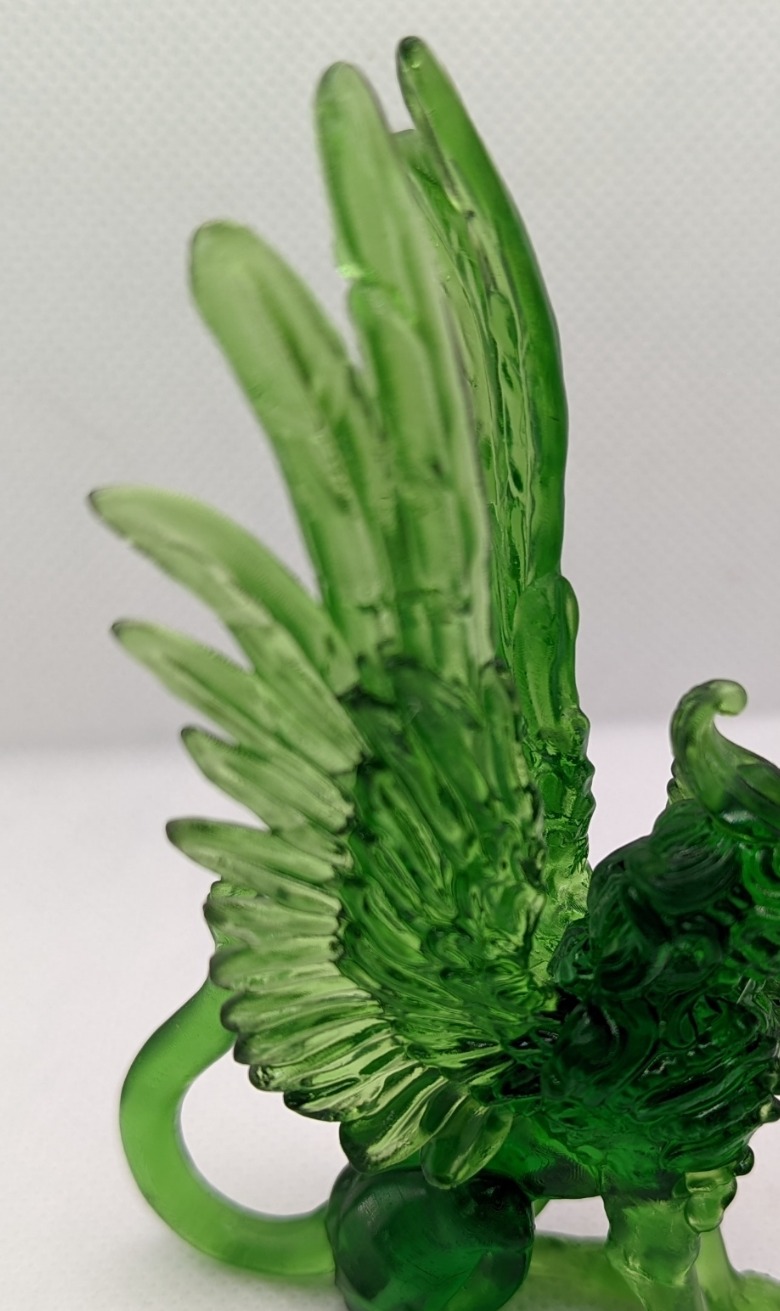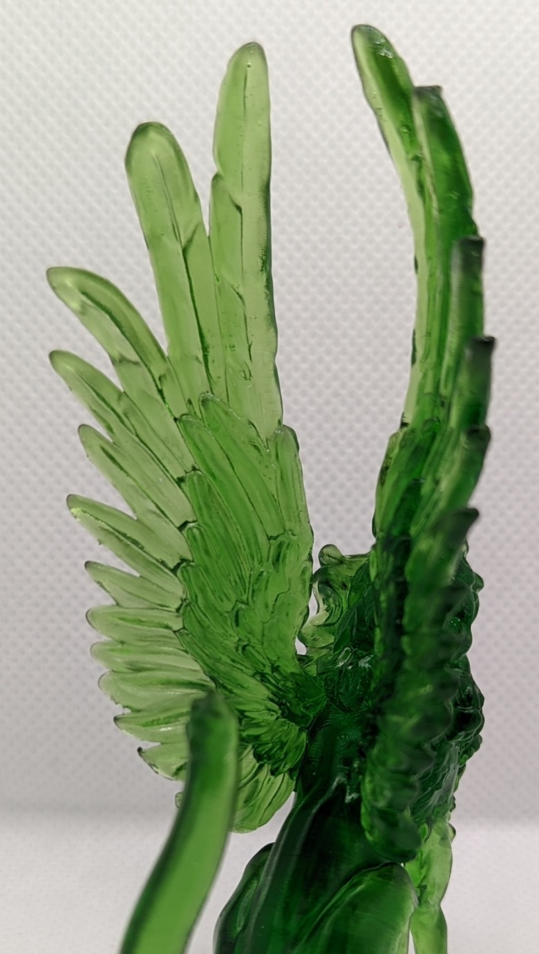 I used the default settings for the first real test, and the delicate supports intersecting the larger body failed. The half-printed Sphinx butt fell off the structure and plopped in our resin and, over the next 5+ hours, the printer continued on its merry way (as it should), hardening the resin in the pattern of our Sphinx ... on its rear, over and over. The wings look great though?