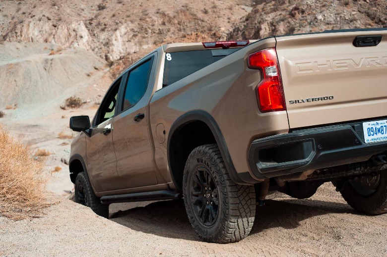 The majority of our trip was spent in four wheel drive high, where the truck is perfectly happy to roll through sandy paths at highway speed. At those points, the front end started getting light, but it was nothing that gentle counter-steering couldn't solve. Switch into two wheel drive on loose surfaces, and powerslides can be easily initiated and carried through curves. The long wheel base prevents the rear from snapping out too far. Four-low with the rear locker engaged is perfect for low-speed terrain. We felt that the front locker was rarely needed, but it could be good for mud. We drove the Silverado only through dry environments, but Chevy did develop the truck for marshier trails as well.
