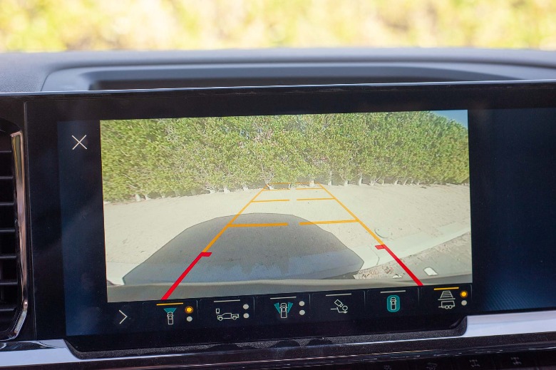 These are absolute lifesavers when navigating through narrow canyons and dodging brushes with boulders. Unfortunately they automatically shut off every time the driver exceeds ten miles per hour, leaving you to fumble with the touch screen to desperately make them come back. A Chevy engineer tells us he hopes to have that fixed for production, and we're right there with him.