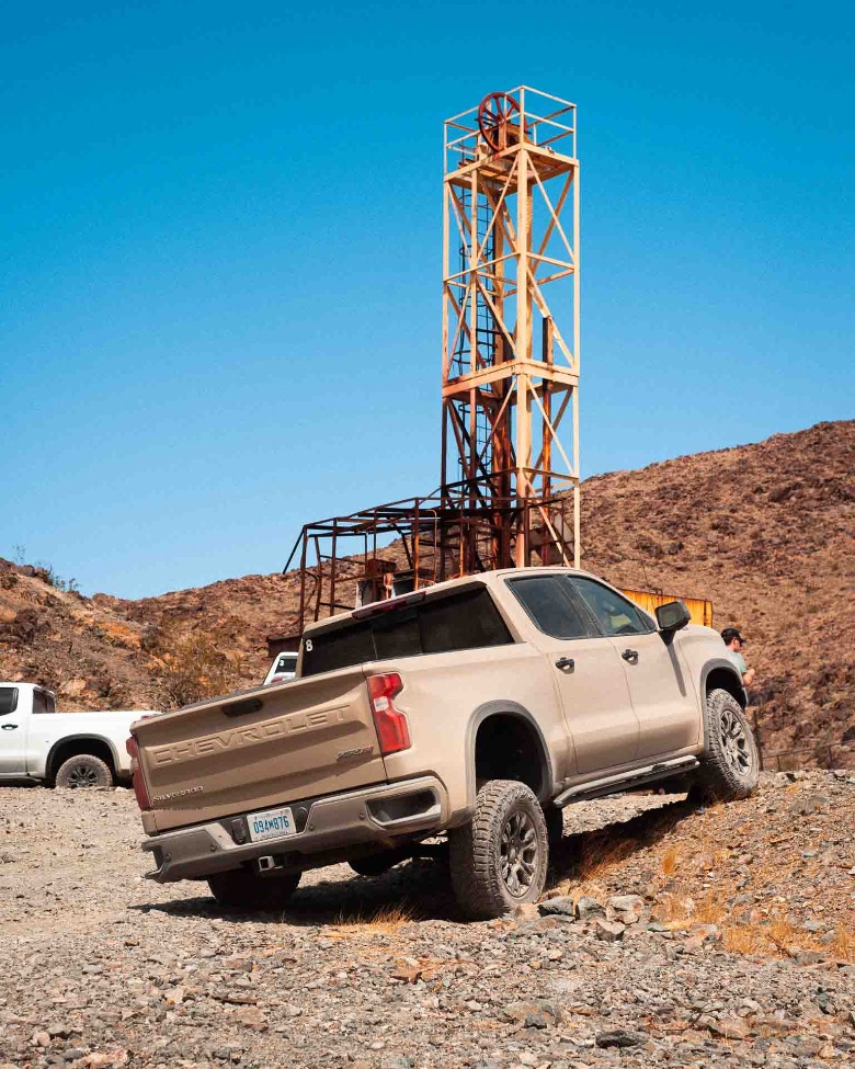 Out in the California desert, it proved difficult to find an obstacle the Silverado ZR2 couldn't climb over. The robust four wheel drive and electronically controlled hydraulic shocks will give a novice off-roader the confidence to be scaling banks and weaving between boulders in a matter of minutes. In expert hands, the truck will do the exact same things, just at double the speed. The suite of four wheel drive gadgets allows the Chevy to be rock-crawling after lunch, then desert pre-running ten minutes later. All while blasting A/C through 100 degree weather with no sign of stress on the engine. Also impressive were the standard 275-wide Goodyear Wrangler tires wrapped around the 18-inch alloy wheels, slightly staggered with 265s at the front. On nearly a dozen trucks, the tires endured being aired up, then down, then up again, then driven over sharp rocks. Not a single one went flat.