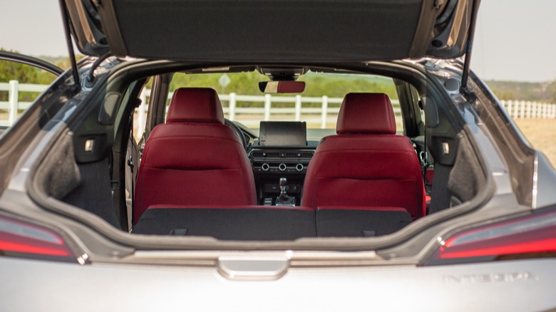Rear legroom is the same as the Honda, at 37.4 inches. At five foot ten, I can easily sit behind myself, but multiple occupants over six feet may begin to feel cramped. For extra charging, you get another two USB-A ports at the back of the console. With the rear seats folded down, there's plenty of cargo space available, capping out at 24.3 cubic feet. The sloping roofline of the Integra will however limit space for tall objects in the hatch.