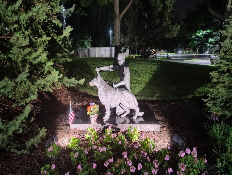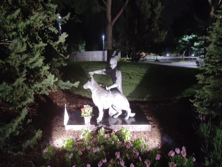 This statue of a soldier with his dog is another matter entirely. I'll show you three photos of this statue, and of the three, the OnePlus 10T above just nailed it the best. Everything in this shot is crisp from the texture of the dog's fur to the flowers on the ground in front of the statute to the fence in the background.