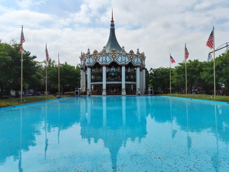 On the day these photos were taken, the sky started off quite overcast and cloudy. There was blue in the sky, but the predominant colors were much paler and more diffused (read: white). The carousel in the background is, with all due respect to Great America, not nearly as bright and sharp as the 10 Pro's photo suggests. The reality is things are a bit paler. Of course, the OnePlus 10T did not handle the flapping flags very well, showing an almost double image in the flags along the right-hand side.