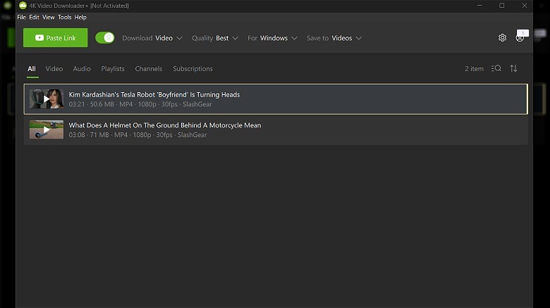 4K Video Downloader then downloads the video for you and keeps all your videos in an organized list that displays their size, resolution, and framerate. It's that easy. You can easily find the video on your computer by clicking the folder icon next to the download in the app. When you're ready to search for another video to download, click on the wireframe globe icon in the bottom-right of the window, choose the website you want to search from the available options, and repeat the previous steps. You have ten free downloads each day. If you want more, you'll need to activate the license.