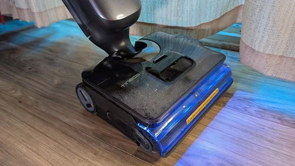 While trying to avoid unfurling a litany of useless specifications, I will highlight some of the S9 Artist Steam's many impressive measurable traits and why you might care. For example, Tineco says that the steam function raises the steam temperature up to 284 degrees Fahrenheit to power through stubborn stains, and it can also get under just about anything due to its 180-degree lay-flat design. Should you use that last feature to venture under a bed or low-slung table, the wraparound LED headlight can help you in finding lost treasures left behind by your toddler. And thanks to its upgraded pouch cells, a type of lithium battery, you can enjoy a runtime of up to 75 minutes, or about 15 minutes more than you ever want to spend cleaning your floors anyway.