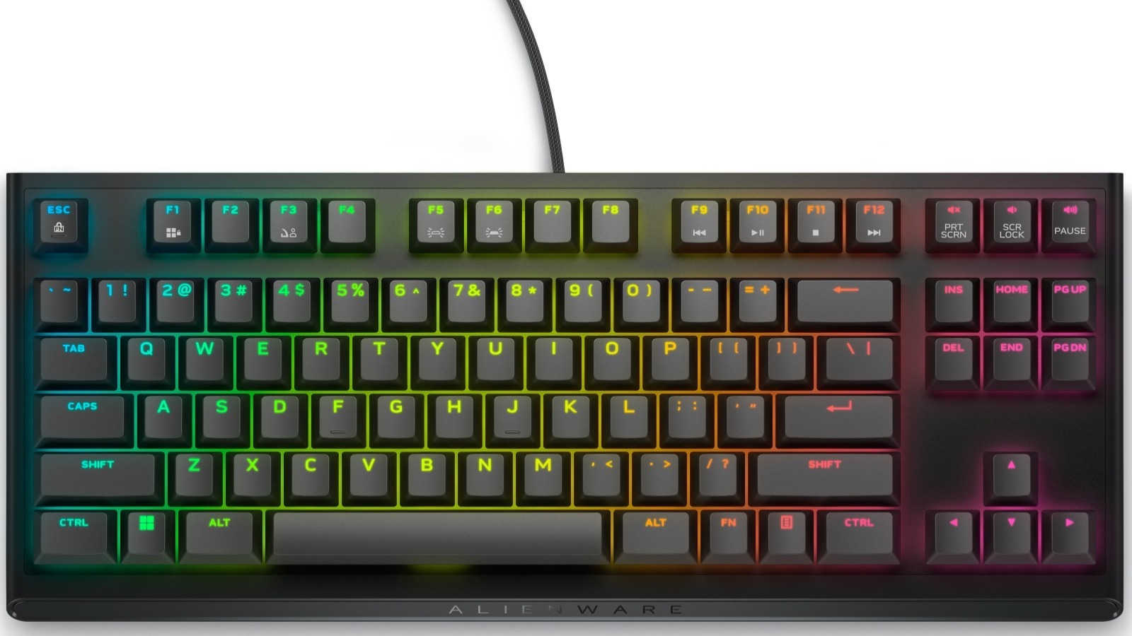 Dell is also adding Alienware's first TKL mechanical keyboard to its lineup. It features Cherry MX Red switches with double-shot PBT keycaps. Alienware is promising permanent protection against corrosion courtesy of a thick gold layer for the enclosure and 100 million actuations without quality degradation. The model is priced at $149.99 and goes on sale in the coming weeks.