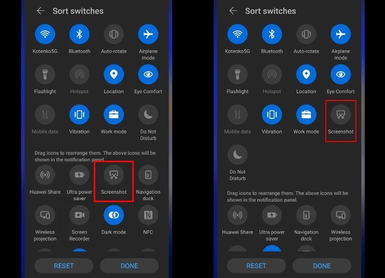 If the screenshot function is not already one of the added shortcuts, you can check if adding it is an option by tapping the Edit button and dragging the icon into the active icons tray. Save your changes to start using the new notification shortcut.