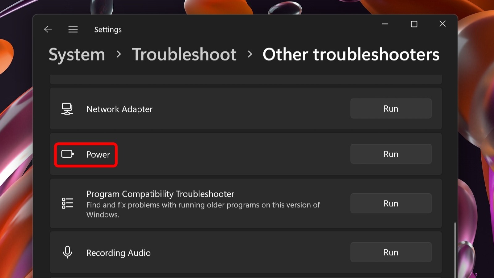 Windows 11 has a troubleshooting program that can offer quick power fixes by diagnosing potential battery issues and offering battery-saving solutions through settings changes. This same tool is also useful for finding and fixing other issues you may be having with your PC, as well.