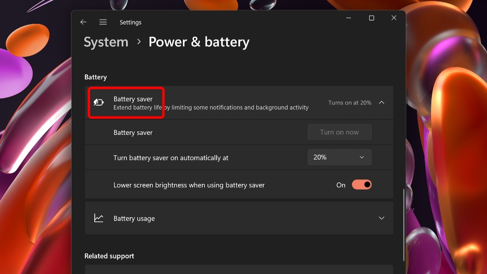 - Click on the Battery Saver option, then click the button that says "Turn on now."