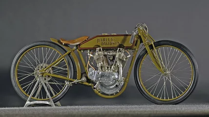 At present, only a handful of 8-Valve Racers are known to still exist. In 2015, a model sold in Australia for A$600,000, currently about $407,000 U.S. dollars (via Shannons). It's a characteristic end for Harley's first great flex, an 8-valve racing nightmare that devoured the cement and wooden–board tracks of the early 20th century.
