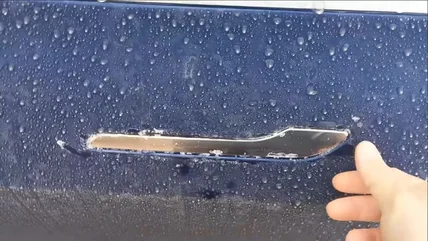 Start by pushing on the front and rear of the door handle to try and crack the ice. While the handle only opens one way, it can actually rock in the opposite direction if you press the front, which Tesla says can loosen the ice. You might have to try it a few times. If that fails, lightly pound on the car door around the latch perimeter, giving the handle a tap or two in the process. Tesla suggests using "forceful bumps" akin to knocking on someone's front door, not the same force as hitting the heavy bag at the gym. No one wants to dent the door. Repeat the process a few times until the ice cracks.