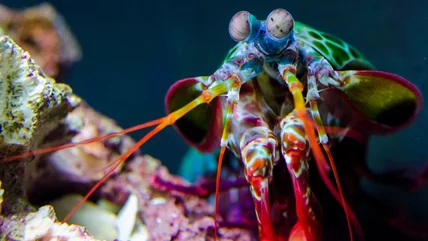 While the Army-funded study is ongoing, it has already revealed that the mantis shrimp relies on a fairly simple mechanical structure to achieve such a powerful impact: a latch-actuated loaded spring. In simple terms, a structure in the shrimp's body is held under enormous compressive tension by the biological equivalent of a latch. All the shrimp has to do to unleash a frankly unreasonable degree of violence is release that latch and allow the force to follow the path of least resistance. Exceptional sight – according to Science Australia, mantis shrimp see 12 color channels to humanity's 3, plus UV and polarized light – keeps those crushing strikes on target, making a potent tool to disable prey and fend off predators.