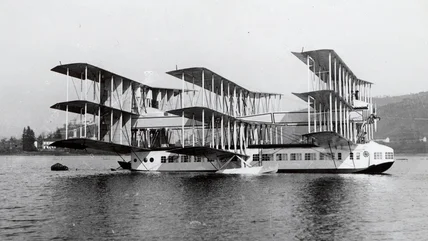 Which leads to the million-dollar question: Could it fly? According to Mustard, the first test flight happened in either March or April of 1921 at Lake Maggiore, Switzerland. After reaching a speed of almost 50 mph, it lifted out of the water — briefly. During a second test flight, it got into the air, hit 62 mph, then plunged straight into the water, destroying the plane.