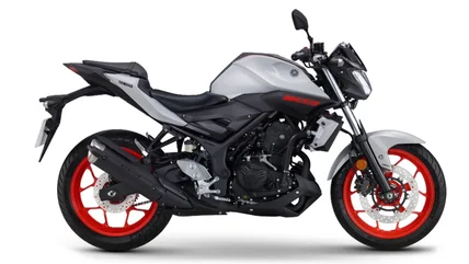 The Yamaha MT-03 is an aggressive-looking machine powered by a liquid-cooled twin with a displacement of 321cc and uses dual overhead cams to operate its four valves per cylinder. Power is sent through a 6-speed transmission and a chain drive while braking is handled by discs on the front and rear. It is essentially a starter version of a naked sport bike that, despite the smaller engine, still provides a sprightly riding experience with excellent handling.